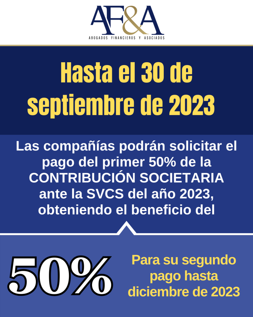 Las compañías que, hasta el 30 de septiembre de 2023, hayan pagado al menos el 50% de la contribución que les corresponde, tendrán derecho a cancelar el otro 50% hasta el 31 de diciembre de 2023, sin lugar a recargo ni penalidad.