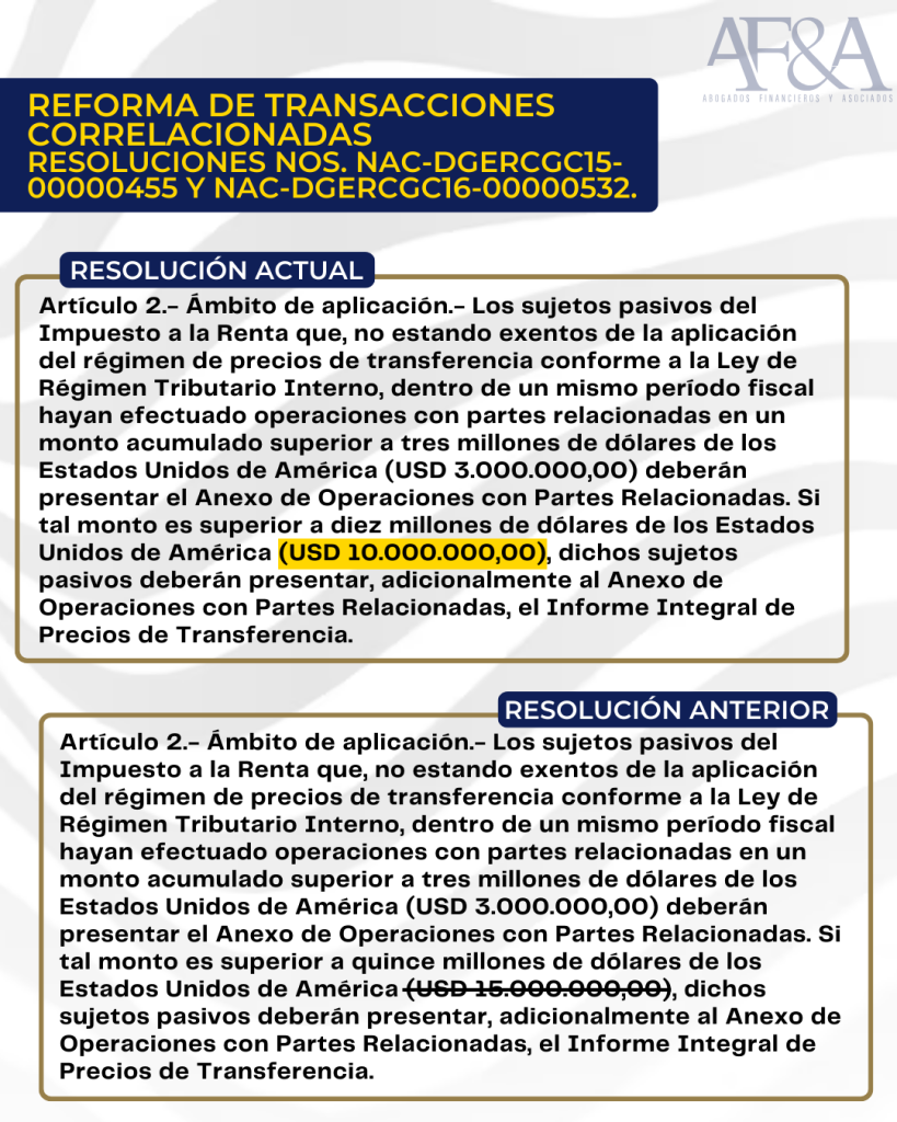 REFORMA A RESOLUCIONES DE TRANSACCIONES CORRELACIONADAS
