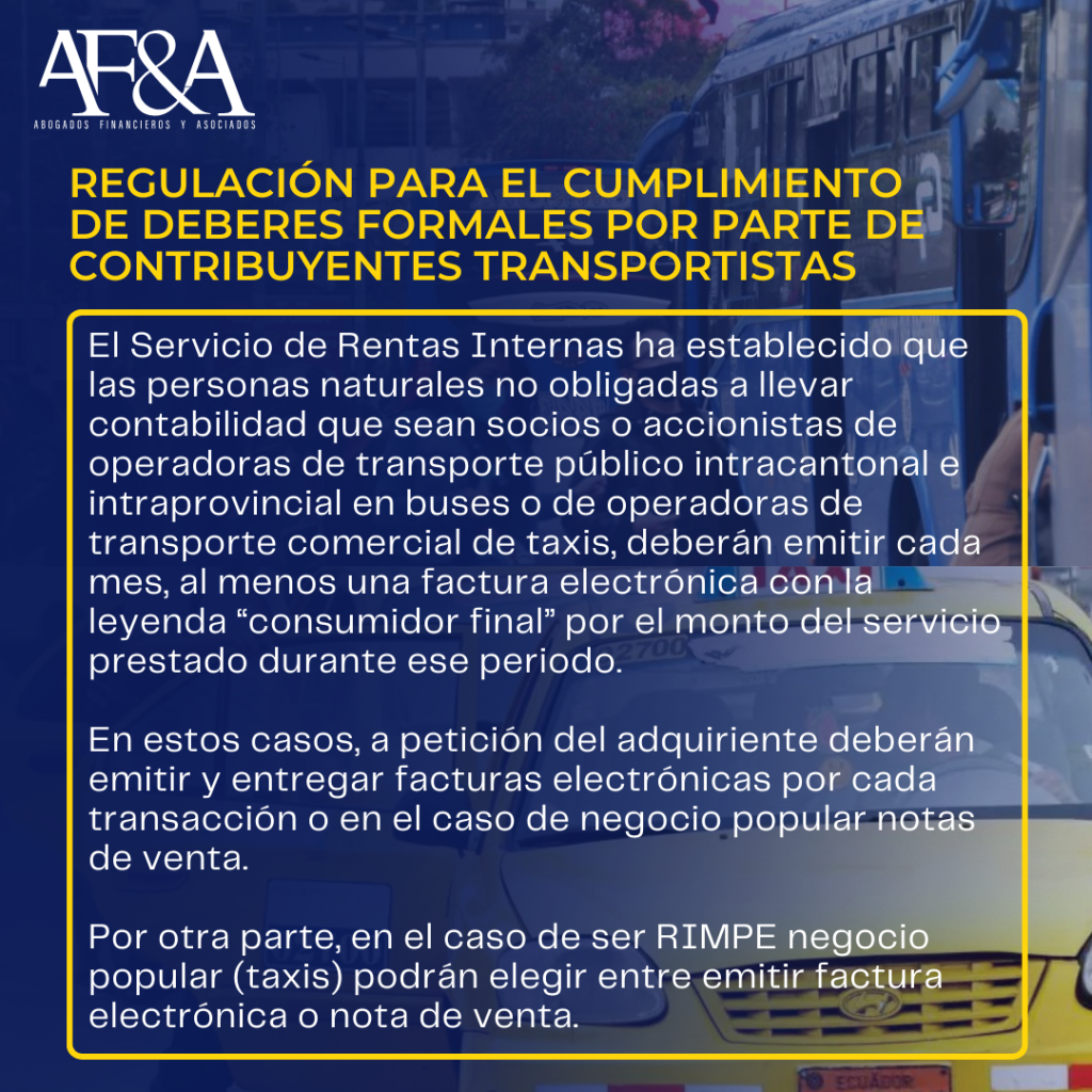 REGULACIÓN PARA EL CUMPLIMIENTO DE DEBERES FORMALES POR PARTE DE CONTRIBUYENTES TRANSPORTITAS Abogados, Financieros & Asociados
